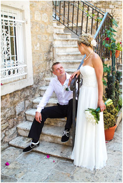В тот ясный солнечный день столбик термометра зашкаливал. Казалось, что на солнце все 50°C, не меньше. Но несмотря на изнурящую жару все держались молодцом. Свадьба была небольшой и поэтому по-настоящему уютной и душевной - родители и сестры со стороны жениха и невесты. Обстановка была очень доброй и веселой, с кучей слов благодарности от всех гостей.
